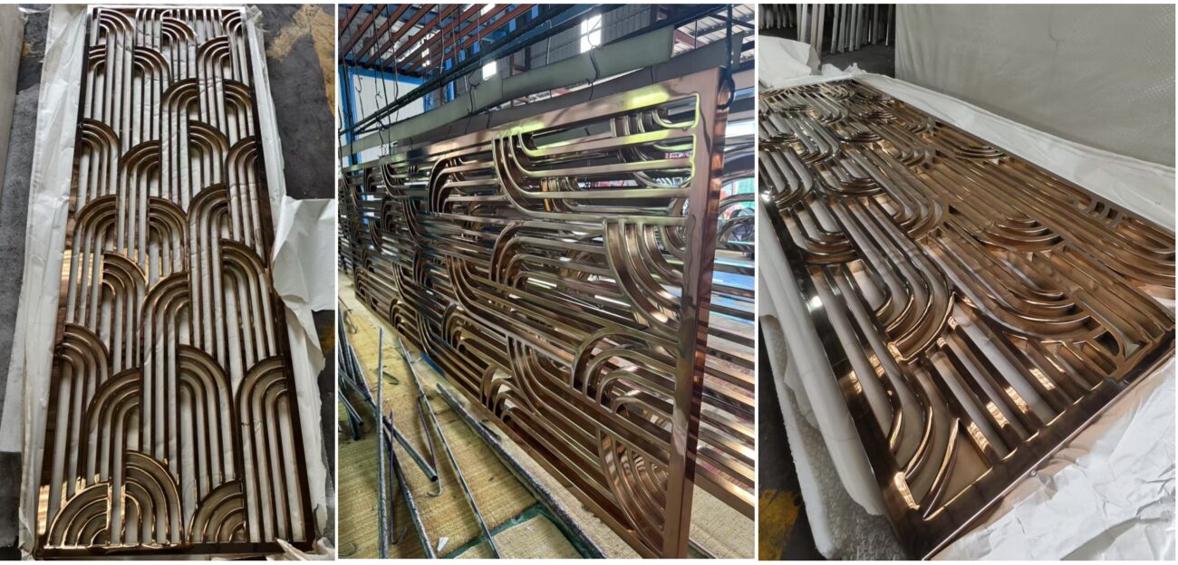 PVD Coating Stainless Steel room divider are widely decorating our home space now. Villas, hotels, luxury stores, bars, clubs, banquet halls, bedrooms and cloakrooms.In particular, that means a lot of peoples already found the advantages of stainless steel titanium plating for decoration now.